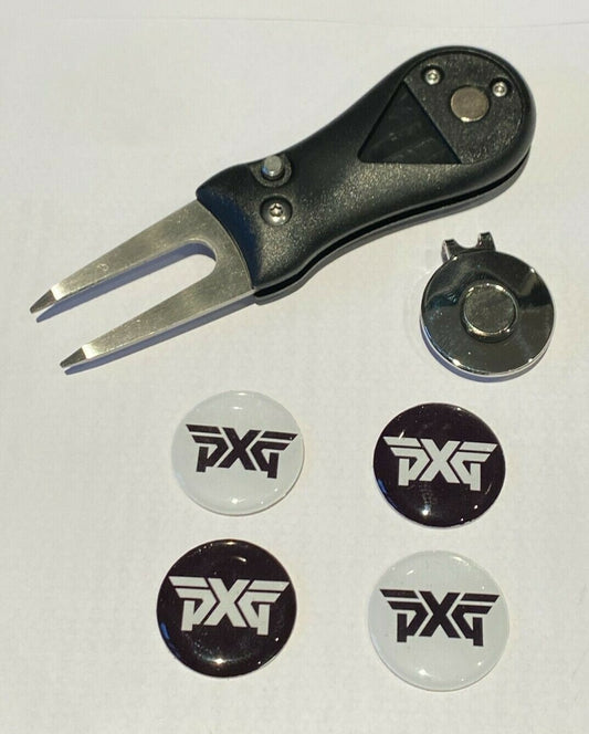 Golf Black Pitchfork Magnetic Hat Clip With 4 PXG 25mm Markers