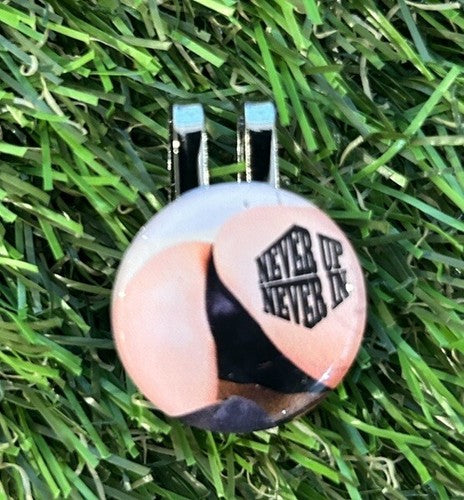 Never Up Never In Sexy GOLF BALL MARKER AND Super Strength Hatclip.