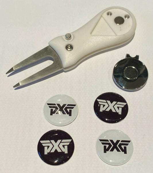 Golf White Pitchfork Magnetic Hat Clip With 4 PXG 25mm Markers