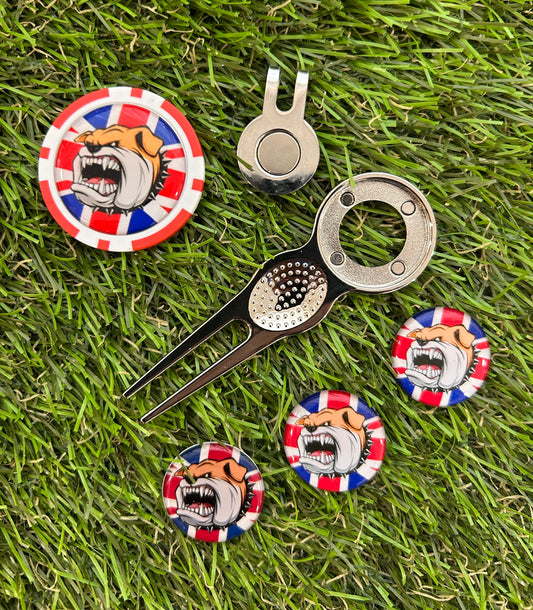 British Bull Dog Union Jack Flag Traditional metal pitchfork Combo Set with Poker Chip