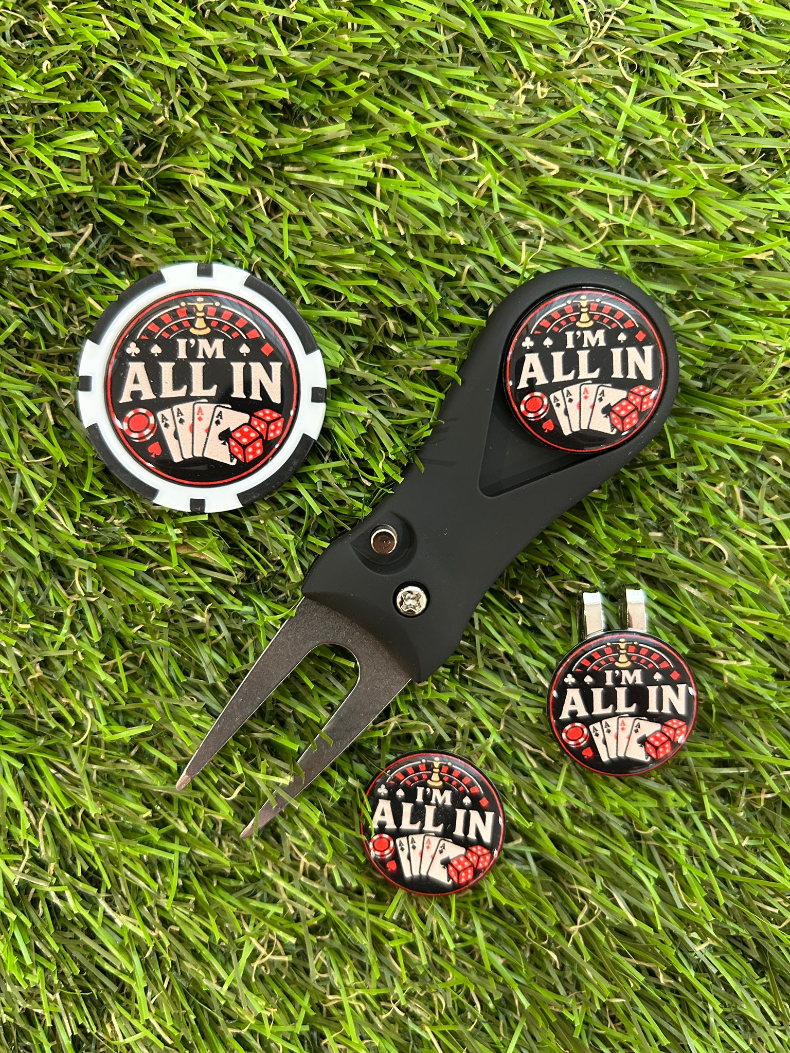 Golf plastic Pitchfork Magnetic Hat Clip With 3 I’m All In Markers And Poker chip